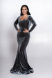 Rochie lungă tip sirenă din catifea, cu decolteu inimă și mâneci lungi